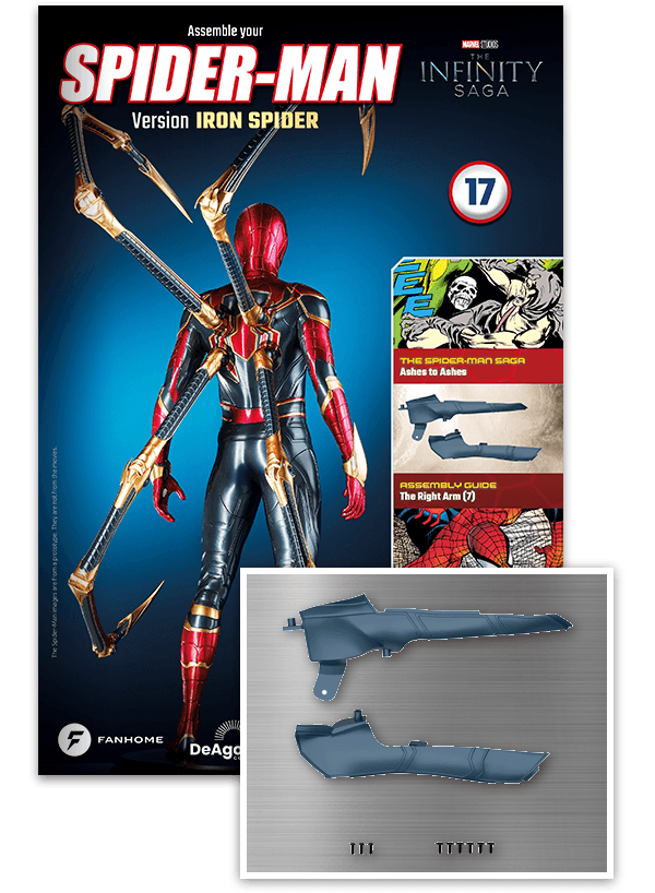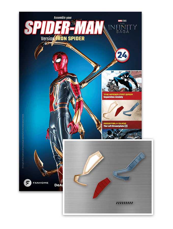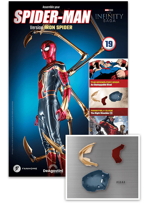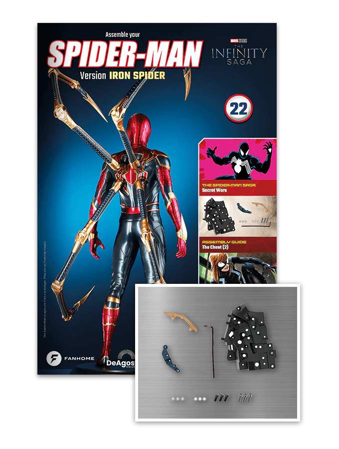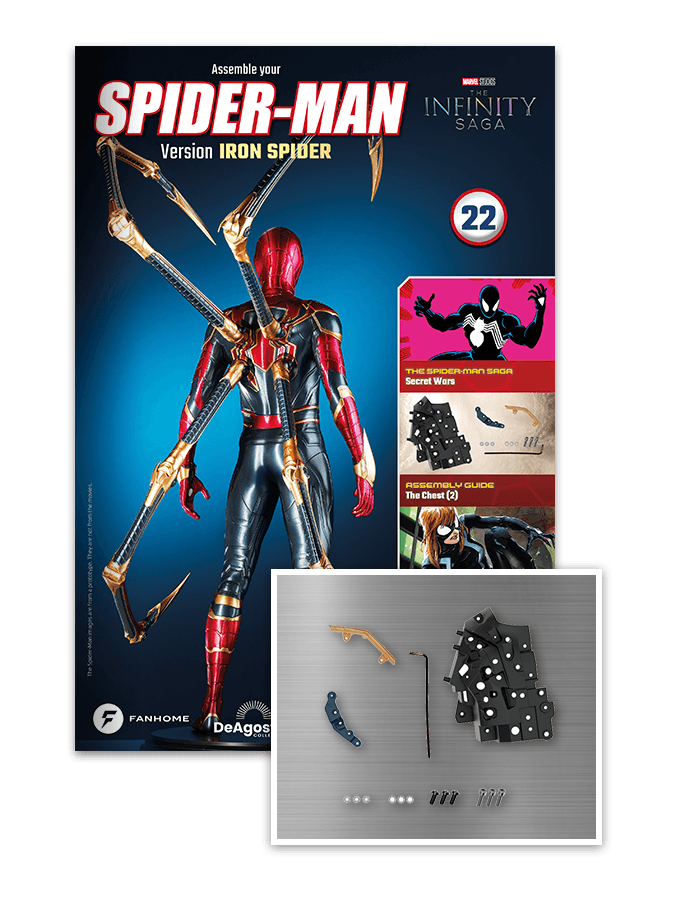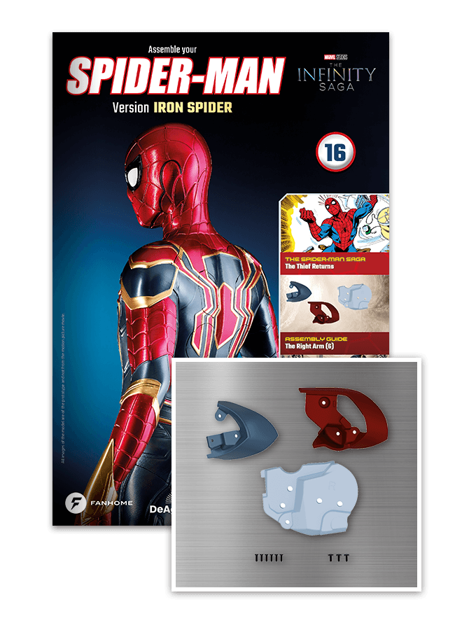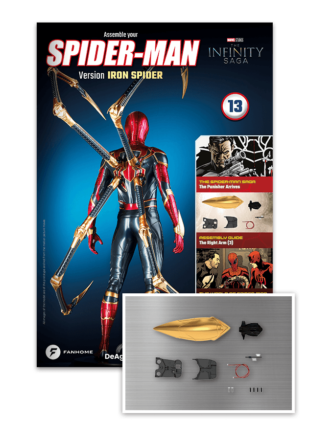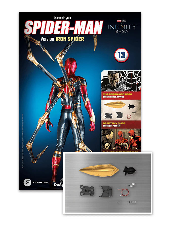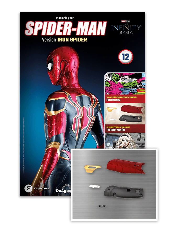 Con la prima uscita del pacchetto Marvel riceverai i primi tre oggetti dei personaggi Marvel + magazine e i primi due componenti del modello dell'Iron Spider + magazine. Nelle spedizioni successive, continuerai a ricevere entrambe le collezioni.