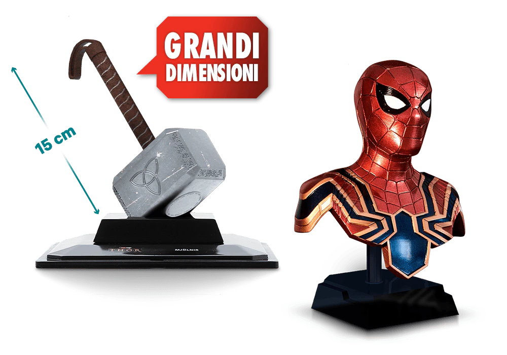 Pagando con PayPal, ricevi due regali aggiuntivi: il busto di Iron Spider e Mjolnir (il martello di Thor), una delle armi più potenti dell’universo.
