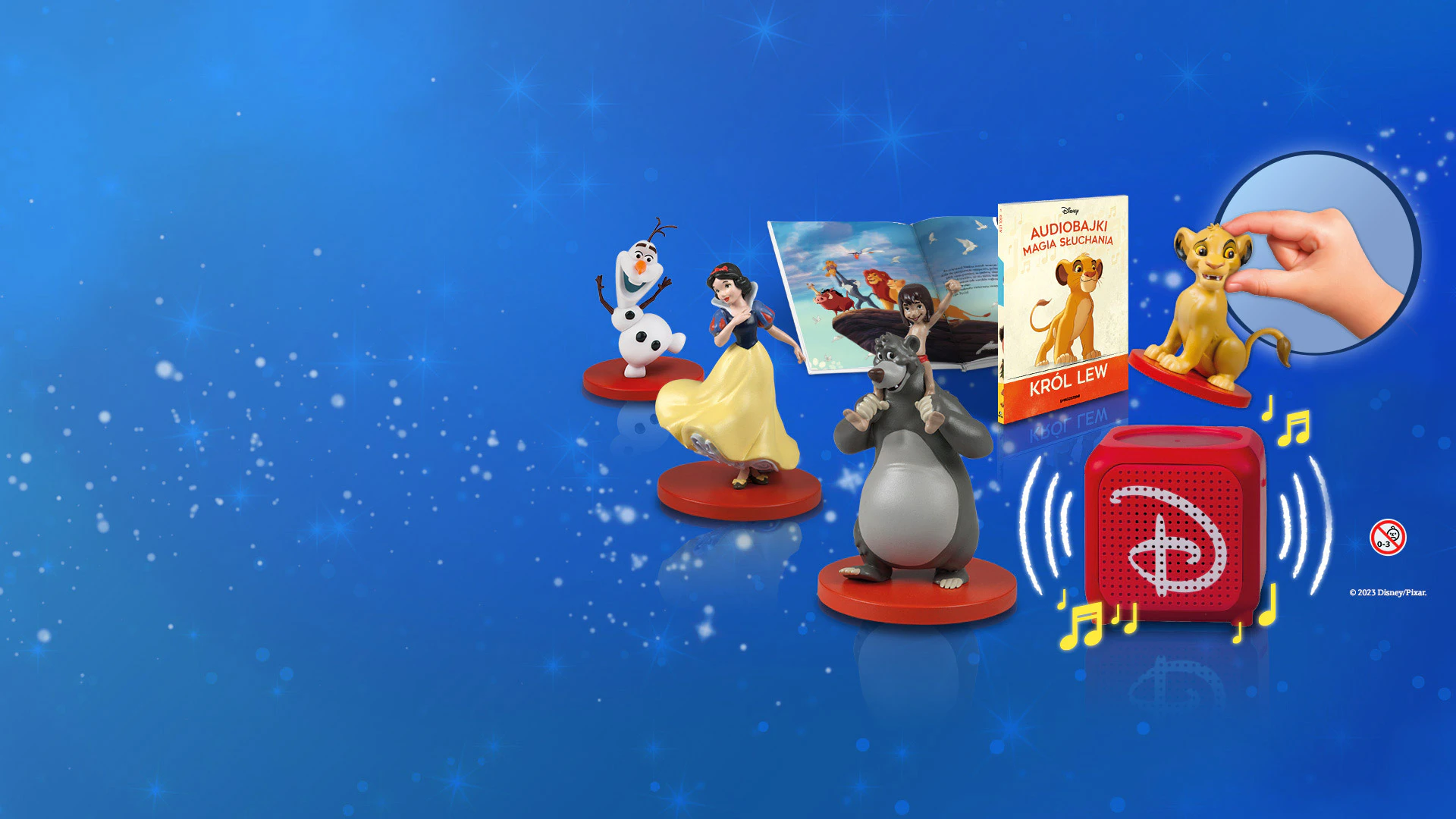 Pięknie zaprojektowana kolekcja książek w twardej oprawie ze wszystkimi najpopularniejszymi historiami ze świata Walta Disneya i wiernie odtworzonymi głosami postaci bohaterów baśni. Dzięki wyjątkowej technologii Twoje dziecko może jednocześnie słuchać i czytać! Wystarczy umieścić figurkę na głośniku i... abrakadabra! Zaczyna się magia słuchania!