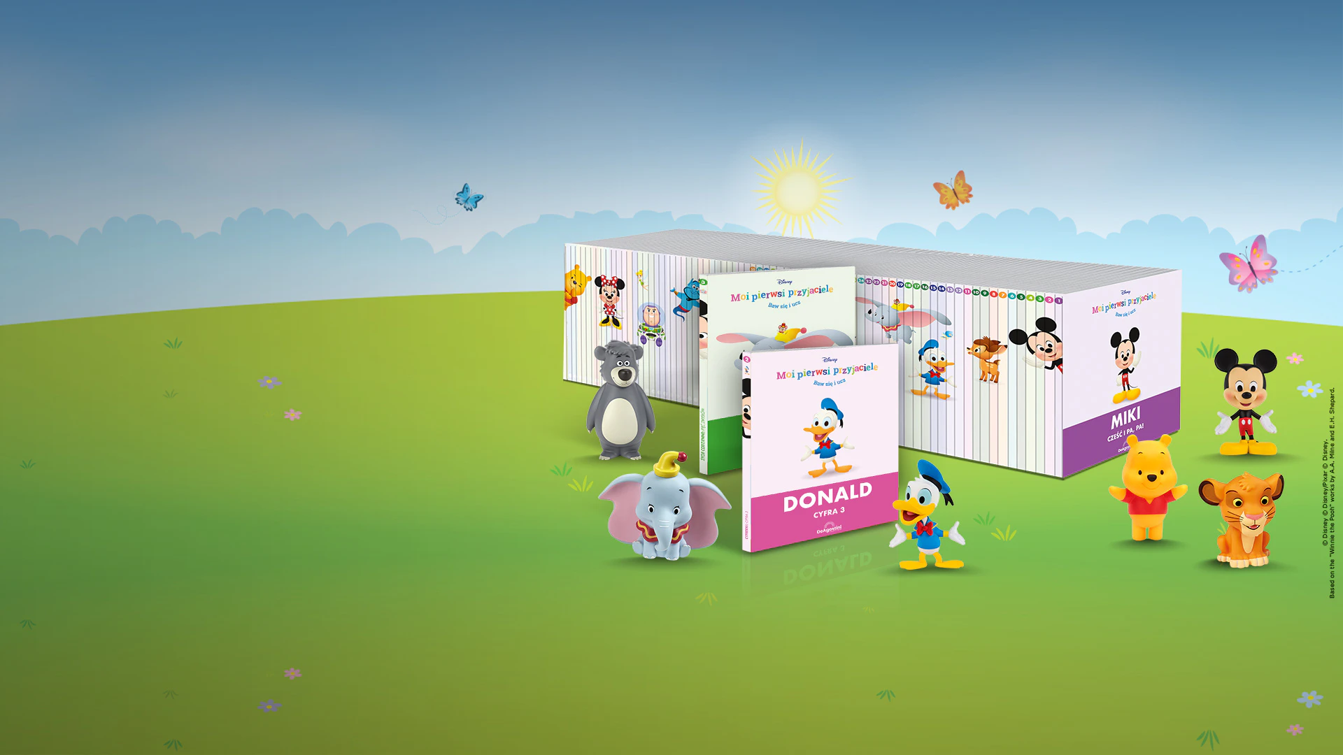 Kolekcja składa się z 80. książeczek z ulubionymi bohaterami bajek Disneya i Pixara, z czego każda z nich skupia się na jednym z głównych obszarów edukacyjnych: literki, cyferki, przyroda, emocje i wiele innych.