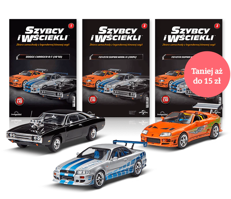 Prezentujemy wyjątkową kolekcję aut z legendarnej sagi „Fast and Furious”. Repliki tych ekstremalnie szybkich i pięknych samochodów są wiernie odtworzone w kolecjonerskiej skali 1:43.