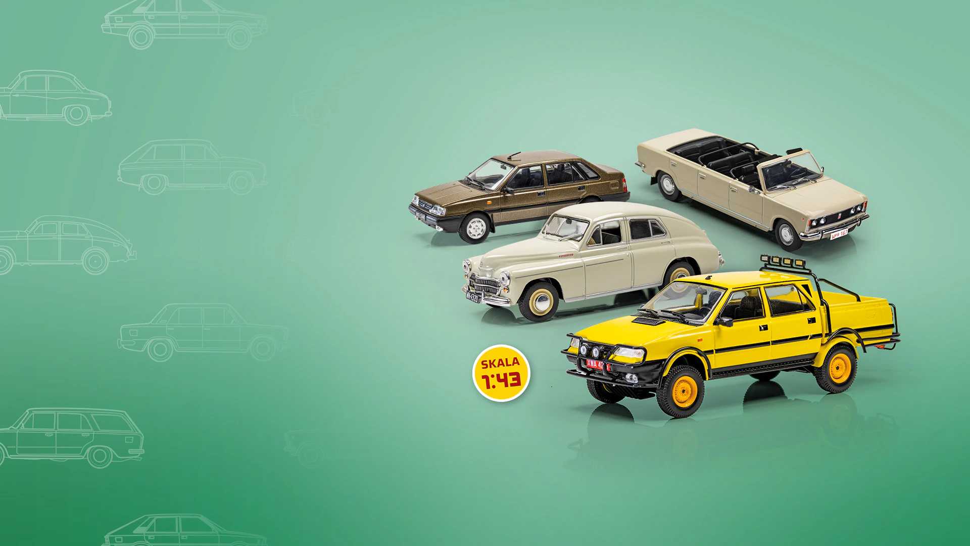 Prezentujemy kolekcję modeli w skali 1:43, odwzorowujących oryginalne samochody, które powstały w fabryce na Żeraniu. Mimo że nie zawsze można było dotrzeć do oryginalnej dokumentacji aut FSO, dołożyliśmy wszelkich starań, by miniatury były jak najbardziej zbliżone do swoich wzorów. Kolory, proporcje, oznaczenia, rejestracje – nasze modele w każdym detalu nawiązują do niezapomnianych samochodów sprzed lat! W kolekcji unikatowe modele i prototypy: Ogar, Fiat 125p Kabriolet, Syrena Mikrobus i inne PO RAZ PIERWSZY W SPRZEDAŻY!