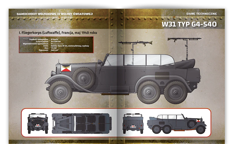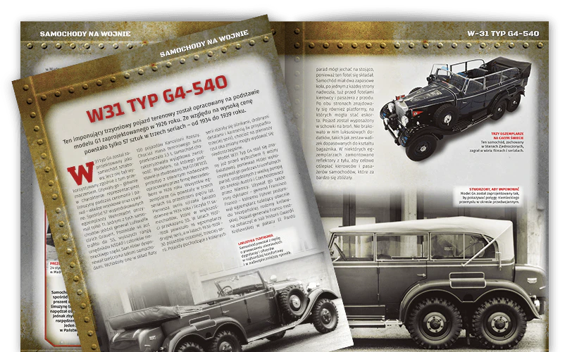 Ta sekcja przedstawia charakterystykę techniczną i historię każdego z aut. Dowiesz się, jaką rolę pełniły te pojazdy podczas wojny i jak przebiegał ich rozwój przez cały czas trwania konfliktu. Odkryjesz dzieje wojskowej motoryzacji i zapomnianych konstrukcji, które miały znaczący wpływ na przebieg działań wojennych.