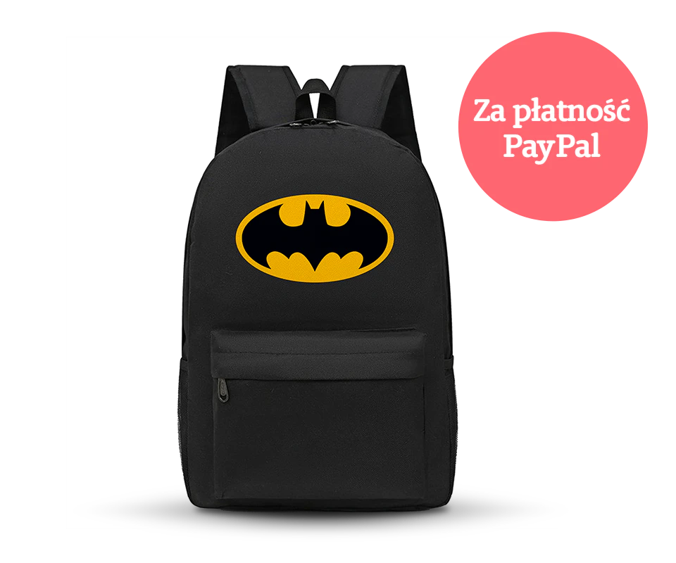 Płacąc za pomocą serwisu PayPal, otrzymasz dodatkowy prezent: czarny plecak z logo Batmana.