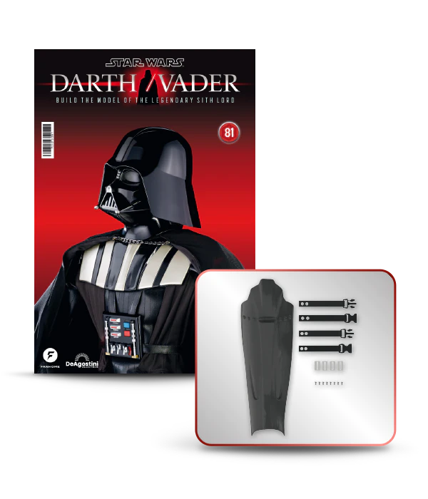 Ten model w skali 1:2 przedstawia postać Dartha Vadera z filmu „Imperium kontratakuje”, z hełmem, peleryną i legendarnym czerwonym mieczem świetlnym. Replika postaci została również wyposażona w efekty świetlne i dźwiękowe, takie jak charakterystyczny oddech oraz słynne słowa wypowiadane przez Lorda Sithów w filmach. Na każdym etapie montażu modelu otrzymasz zeszyt zawierający fascynujące informacje na temat sagi filmowej.