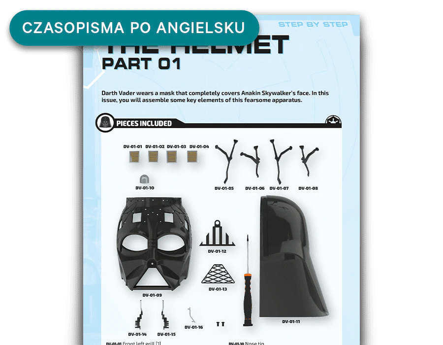 Tutaj znajdziesz szczegółowe instrukcje wraz z przejrzystymi ilustracjami, jak złożyć model Dartha Vadera, zarówno z części mechanicznych, jak i elektronicznych. Proces budowania budzącego grozę Lorda Sithów jest prosty, dzięki czemu możesz cieszyć się tworzeniem tego wyjątkowego przedmiotu kolekcjonerskiego. Witaj po ciemnej stronie!