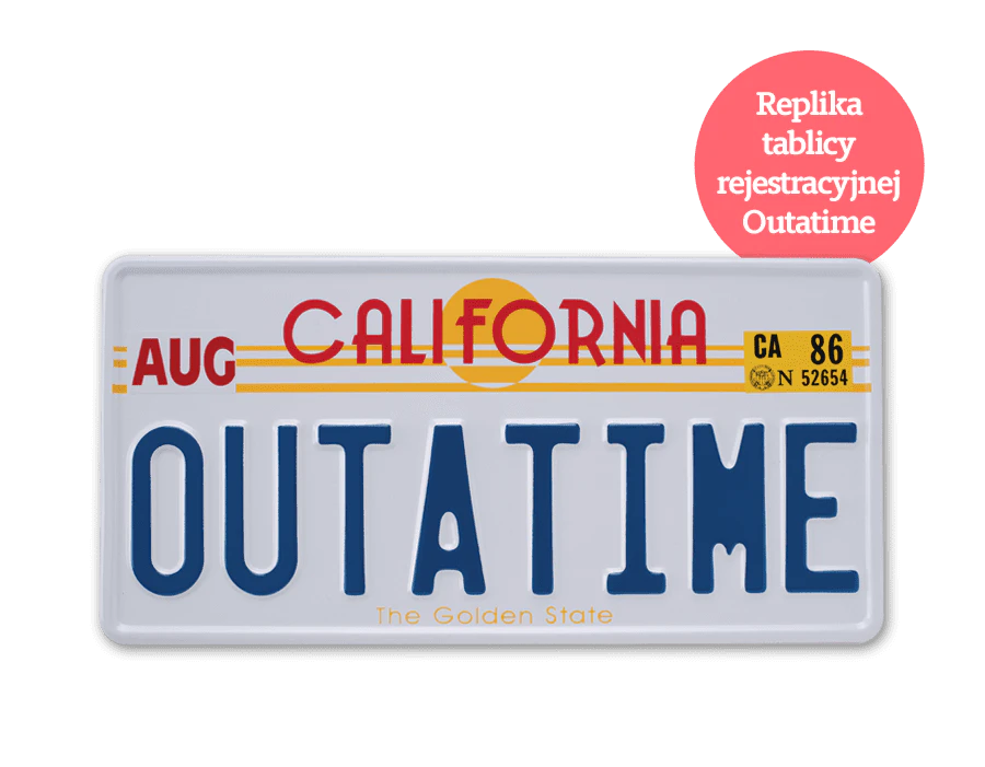 Wybierając metodę płatności kartą lub PayPal, otrzymasz wraz z przesyłką 15*. dodatkowy prezent – replikę tablicy rejestracyjnej Outatime.