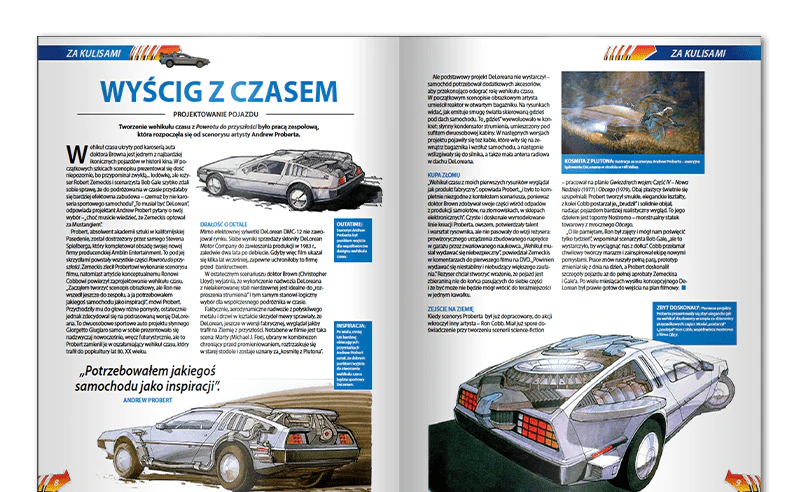Poznasz pasjonującą, pełną ciekawostek, anegdot i nieznanych faktów historię powstawania trylogii „Powrót do przyszłości”. Uatrakcyjniają ją unikatowe zdjęcia z planu oraz rysunki, szkice i projekty słynnych artystów konceptualnych, Rona Cobba i Andy’ego Proberta, dzięki którym niepozorny seryjny DeLorean zamienił się w futurystyczny wehikuł czasu.