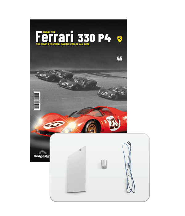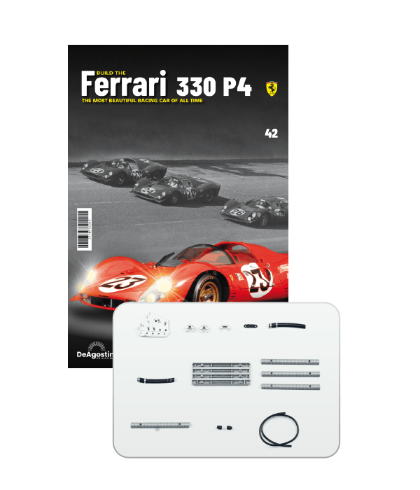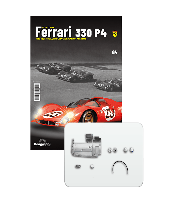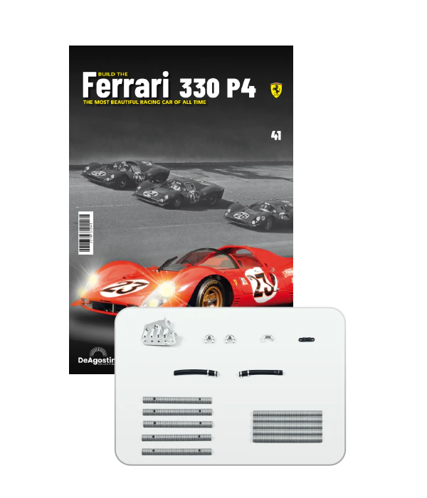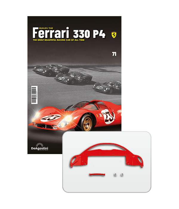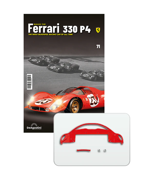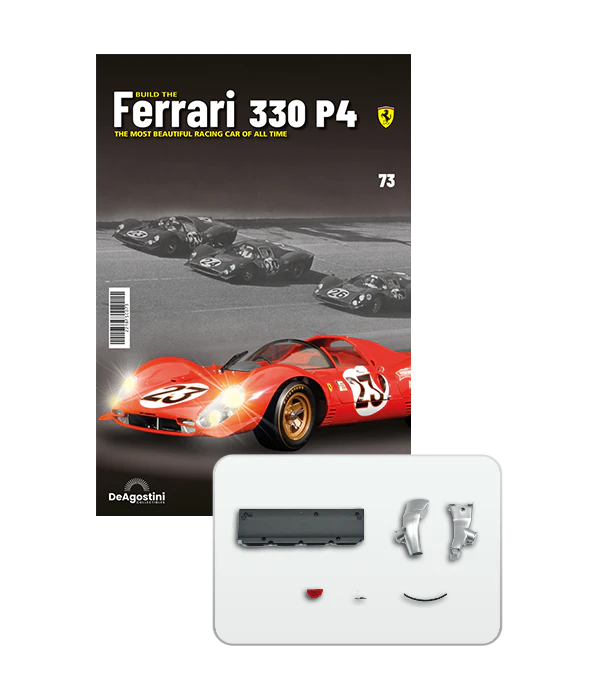 Teraz możesz zbudować jedno z najwspanialszych aut w historii wyścigów samochodowych. Ten niezwykle szczegółowy model z metalu jest repliką Ferrari 330 P4 wyposażoną w perfekcyjnie odwzorowane elementy mechaniczne. Potężny 12-cylindrowy silnik, zawieszenie i elementy pomocnicze są wiernie odwzorowane w najdrobniejszych szczegółach, a dostęp do nich można uzyskać przez otwierany bagażnik, maskę i okna.
