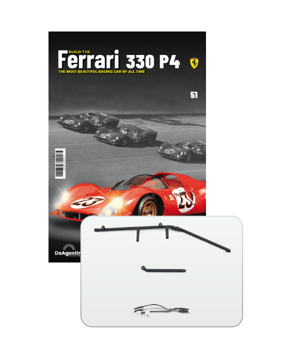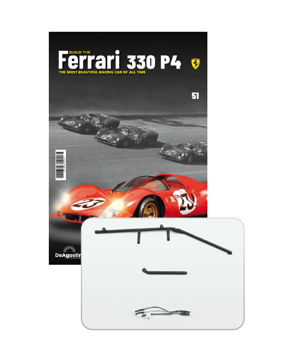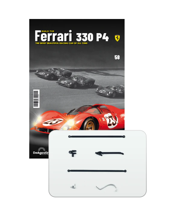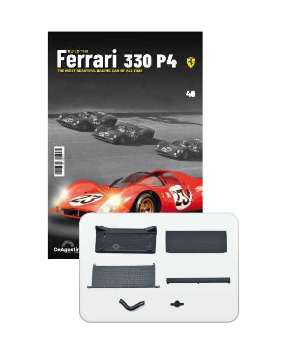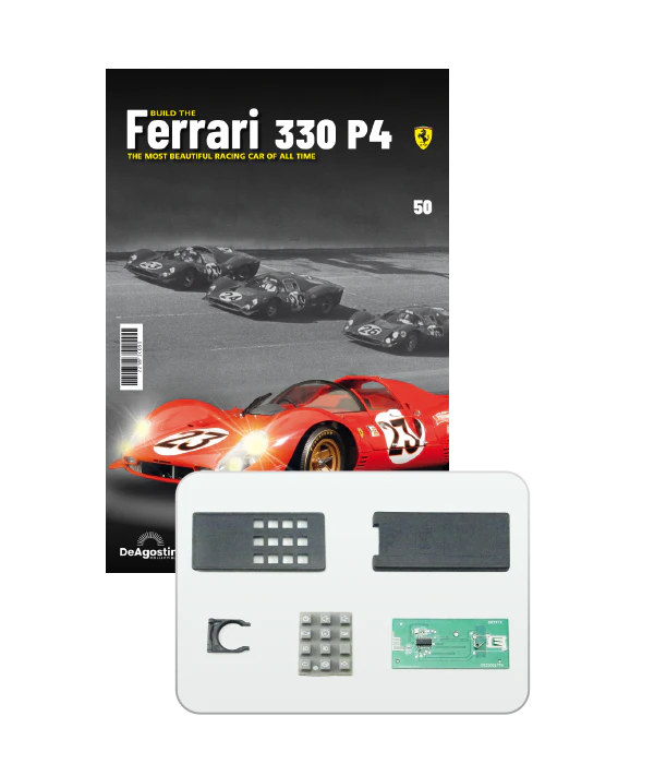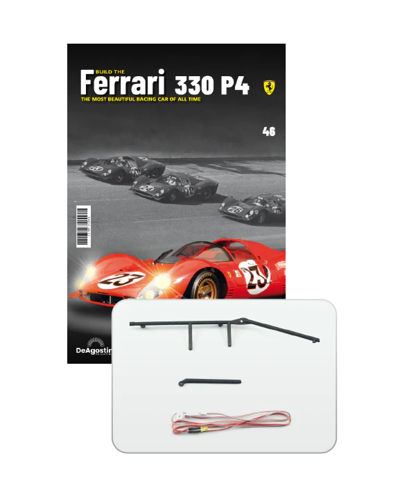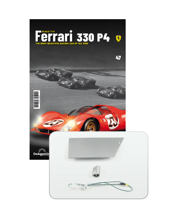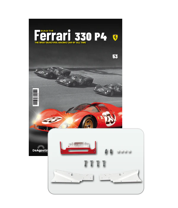 Teraz możesz zbudować jedno z najwspanialszych aut w historii wyścigów samochodowych. Ten niezwykle szczegółowy model z metalu jest repliką Ferrari 330 P4 wyposażoną w perfekcyjnie odwzorowane elementy mechaniczne. Potężny 12-cylindrowy silnik, zawieszenie i elementy pomocnicze są wiernie odwzorowane w najdrobniejszych szczegółach, a dostęp do nich można uzyskać przez otwierany bagażnik, maskę i okna.