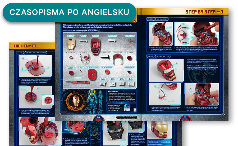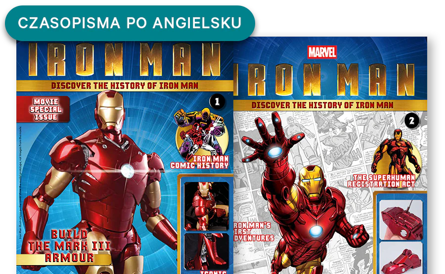 Poznaj jednego z najbardziej niesamowitych bohaterów świata Marvela oraz jego niezwykłe zbroje i skompletuj swoją kolekcję! Tego nie może przegapić żaden miłośnik Iron Mana! Do zeszytów dołączane są elementy do wykonania wyjątkowej, całkowicia ruchomej i wyposażonej w spektakularne efekty świetlne reprodukcji zbroi Mark III, dostępnej w edycji limitowanej. Dzięki prostym instrukcjom montażu staniesz się posiadaczem niesamowitego Iron Mana i dołączysz do drużyny Avengersów!