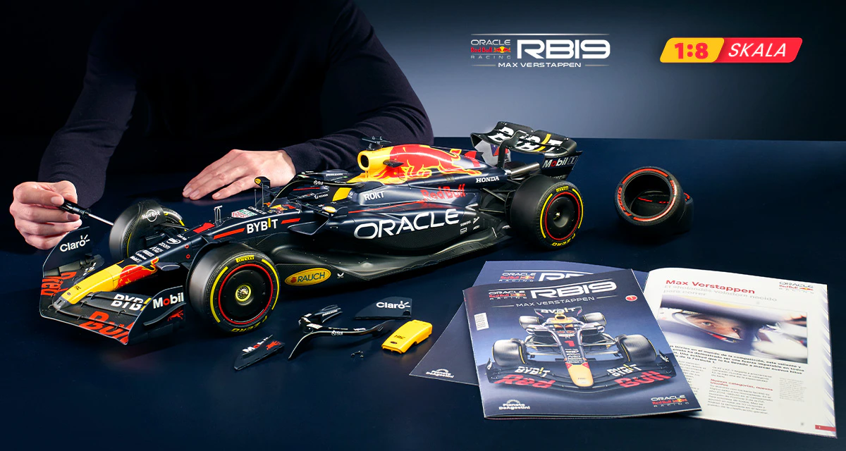 Poznaj ekscytujący świat wyścigów Formuły 1, składając jeden z najbardziej utytułowanych samochodów wszech czasów. Zaprenumeruj kolekcję i krok po kroku złóż replikę bolidu Oracle Red Bull Racing RB19 w skali 1:8.
