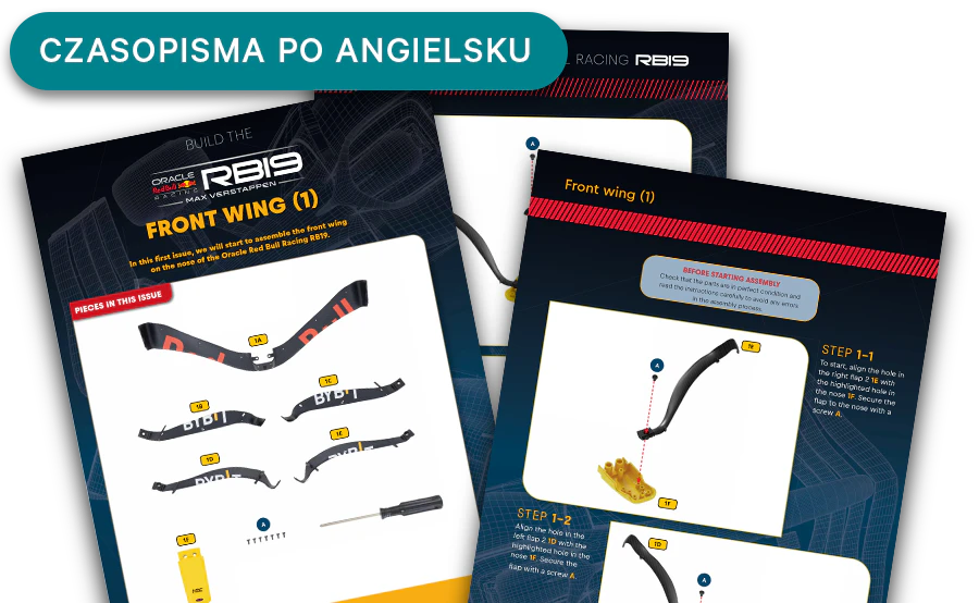 Wszystkie części potrzebne do złożenia modelu otrzymujesz wraz z cyfrowy zeszytem do pobrania na wszystkie urządzenia. Ilustrowane instrukcje krok po kroku przeprowadzą cię przez wszystkie etapy montażu i ułatwią ci zbudowanie RB19.