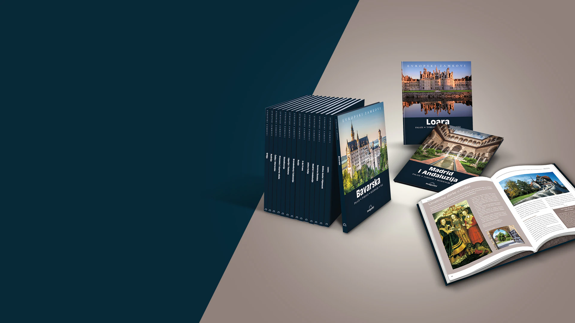 Dragocena zbirka od 55 tomova, bogato ilustrovana i praćena zanimljivim, jednostavnim tekstovima i pričama vezanim za detalje svakodnevnog života u minulim vremenima, upotpunjena istorijskim činjenicama, zanimljivostima i legendama: ovo je sveobuhvatan i uzbudljiv virtuelni plan puta koji vodi u posetu „kamenim gorostasima“, često uokvirenim jednako veličanstvenim i zadivljujućim pejzažima.