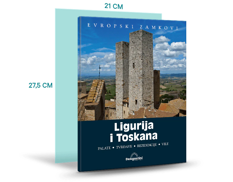 Ovo izdanje vodi nas na putovanje od severa prema jugu, od zidina gradića Finale Ligure pa sve do vizantijskog svetionika na Arđentariju, kroz zbijena sela na vrhovima brežuljaka Ligurije, pa do toplog toskanskog pejzaža. Tu, iz Livorna na Tirenskom moru, ide se dalje do zidina grada Luke i Firence, postavljenih u savršen krug, sa čuvenim vilama Medičijevih i impozantnim zamkovima u centru. Putovanje zatim vodi na jug do autentičnih mesta: San Điminjana, grada koji odiše srednjovekovnim duhom, i Voltere, prepune priča o Etrurcima. U Sijeni, koja je dugo ratovala sa Firencom, iz lavirinta uskih uličica izranja Gradska kuća koja gleda načuveni trg. Nakon toga, krug se zatvara, jer put opet vodi do mora i grada Porto Erkolea, utvrđenog uporišta koje je nekada bilo pod vlašću Etruraca i Vizantinaca, a kasnije pripalo Sijeni i Španiji.