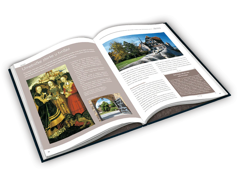 Velike fotografije obogaćuju zbirku i evociraju čarobnu atmosferu plemićkih palata ili strogih utvrđenih zamkova.