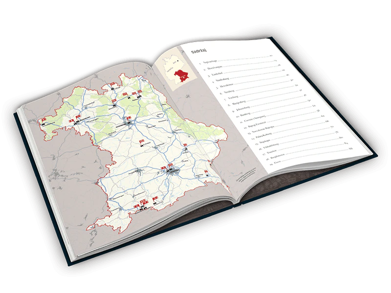 Dvorci Bavarske obuhvataju i zamkove u Švabiji i Frankoniji, istorijskim regijama koje danas pripadaju ovoj saveznoj pokrajini Nemačke. Arhitektonska dela, ponekad monumentalna i strogih linija, poput onih u Koburgu i Bambergu, poznata su pre svega kao „bajkovite tvrđave“ koje je izgradio Ludvig II, napaćeni i genijalni kralj Bavarske iz druge polovine XIX veka. Raskošne palate i neosvojive tvrđave, dakle, koegzistiraju u pejzažu gde bavarski Alpi, šume i Dunav zadržavaju idiličnu čaroliju netaknute prirode na pragu modernih industrijskih gradova.