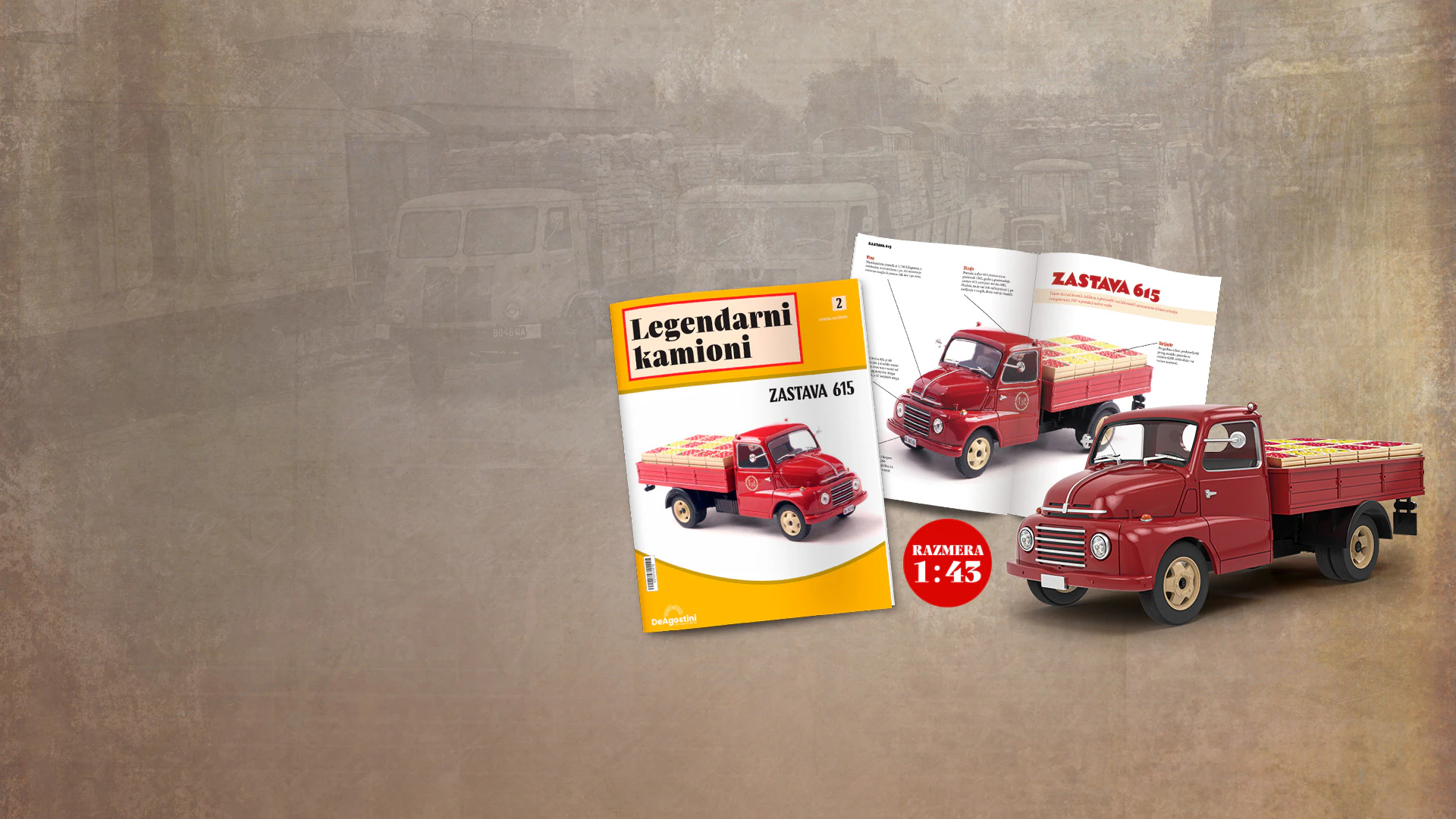 Sakupite sve modele i „ukrcajte se“ u legendarne kamione, koji će vas povesti u prošlost. Kamioni su nekada bili ključni za razvoj Balkanskog poluostrva, u vreme obnove i razvoja regiona nakon izazovnih perioda savremene istorije. Bila su to pouzdana, izdržljiva, profesionalna vozila na drumovima i ništa im nije stajalo na putu kako bi prevezla i isporučila građevinski materijal, robu, kao i ljude.