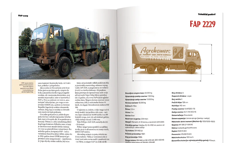 Iscrpan tekst govori o tome kako je svaki kamion proizveden, čime se odlikovao i kako se pokazao u službi. Otkrijte zanimljivosti o istoriji transportne industrije, uključujući neverovatne detalje o tehničkoj obradi i originalnom dizajnu.