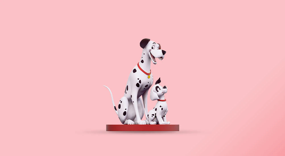 Pongo a Perdita sú dvaja dalmatínci, ktorí musia zachrániť svoje šteniatka – ako aj desiatky ďalších – z pazúrov zlej Cruelly De Vil.