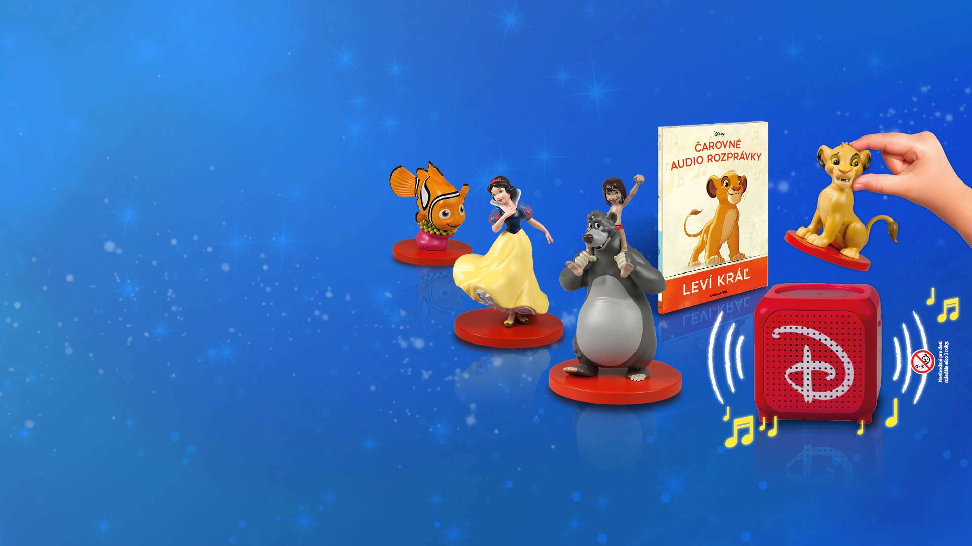 V tejto čarovnej kolekcii audio rozprávok nás hrdinovia ako Snehulienka, Aladin, Nemo, Simba či Mauglí z univerzálnych príbehov pre deti aj dospelých prenesú do detstva a predstavia nám základné hodnoty: Nemov optimizmus, Aladinovu odvahu, Snehulienkino dobré srdce, hodnotu priateľstva či krásu prírody.