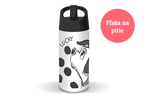 Ako darček za platbu kartou či cez paypal dostanete fľašu na pitie so Šťastíčkom z rozprávky 101 dalmatíncov.