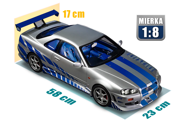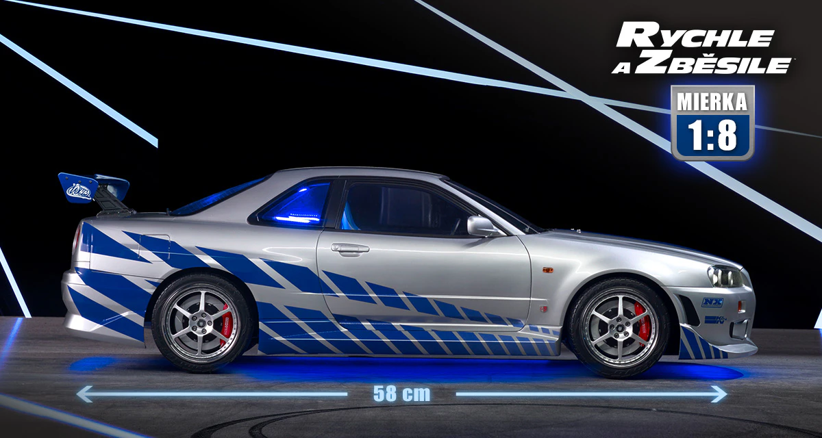 Táto nádherná replika v pôsobivej mierke 1:8, rovnako veľkolepá ako filmový model, poteší fanúšikov modelárstva, začiatočníkov aj skúsených, ako aj všetkých fanúšikov kultovej ságy! Počas montáže objavíte všetky technické vychytávky superauta s neuveriteľnými možnosťami. Všetky funkcie Nissanu aktivujete pomocou diaľkového ovládača! Zabavte sa!