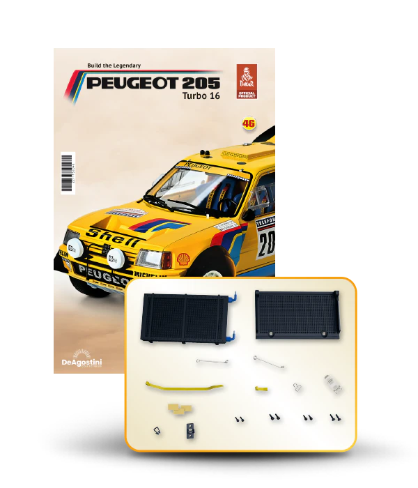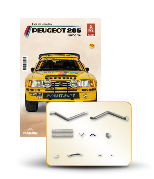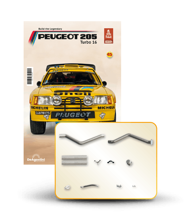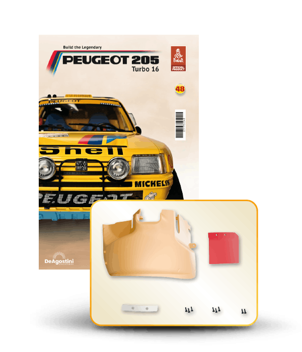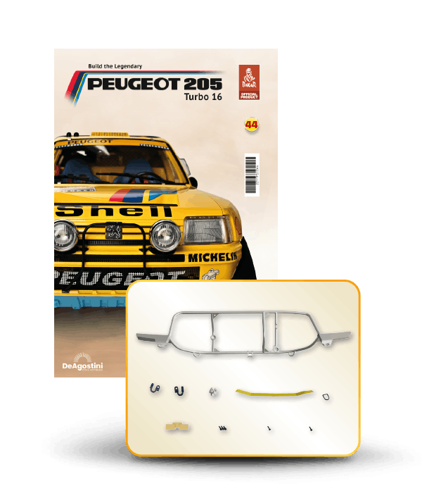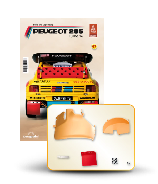 Teraz si môžete postaviť vlastný model veľkolepého Peugeotu 205 Turbo 16 Grand Raid v mierke 1:8, víťaza Rely Paríž-Dakar 1987, ktorý šoférovali Ari Vatanen a Bernard Giroux. Tento nikdy predtým nevydaný model je prestížnym prírastkom vo svete modelárstva. Zabavte sa pri jeho zostavovaní a vystavte si ho na viditeľnom mieste vo svojej domácnosti.